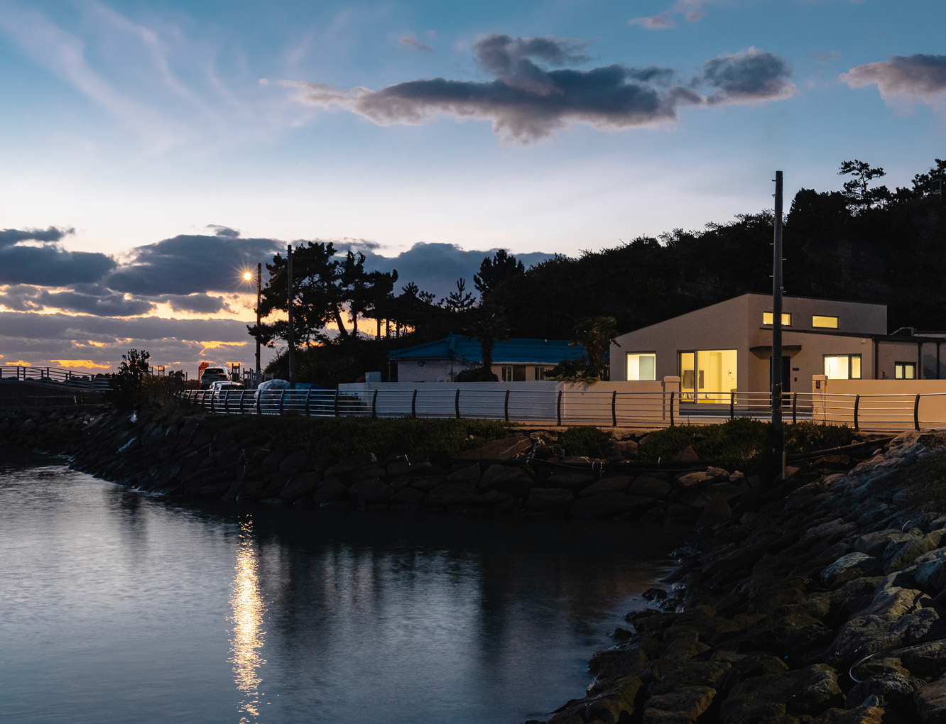 바람은 부드럽게 스치고, 물빛과 햇살은 천천히 집 안으로 퍼져갑니다.